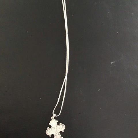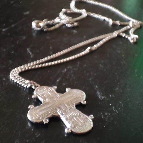 Det er forgyldt sølv, med en lang forgyldt kæde!