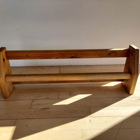 Ribben er modificeret lidt, de fleste ribber har normalt kun 2 fæstnings steder til montering på væg, men grundet den øverste fæstnings liste sidder under selve ribbe udhænget har jeg tilføjet en ekstra øverst i større dimension og skruet fast (bill. 2) da det er mere stabilt og malet i samme farve.