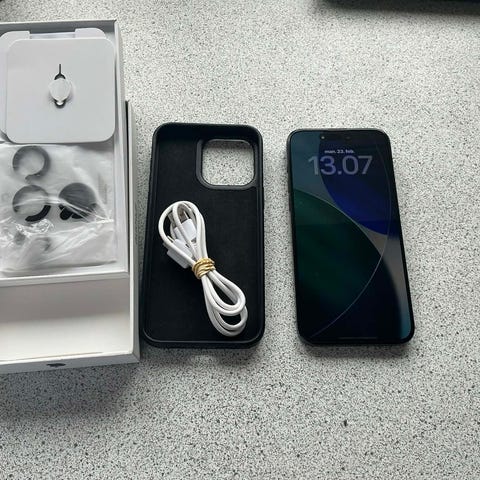 iPhone 15 Pro Max 256 GB – Sort Titanium – Apple FineWoven cover – USB-C – 91 %🔋