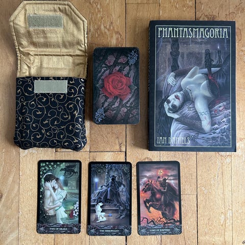 The Gothic Tarot kortsæt med guidebog. Sættet indeholder tarotkort med gotiske illustrationer samt en ledsagende bog. Flotte kort med vampyrer, spøgelser og andre overnaturlige væsener. Send gerne besked hvis du vil se andre kort.