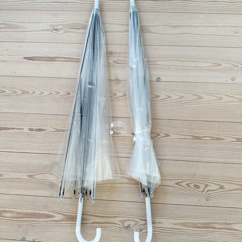 Smuk råhvid paraply eller parasol, perfekt til fx bryllup. Der er ikke mærke i, men det ligner meget den klassiske fra Lisbeth Dahl. Udslået er diameteren ca. 85 cm., og sammenslået er længden ca. 92 cm.