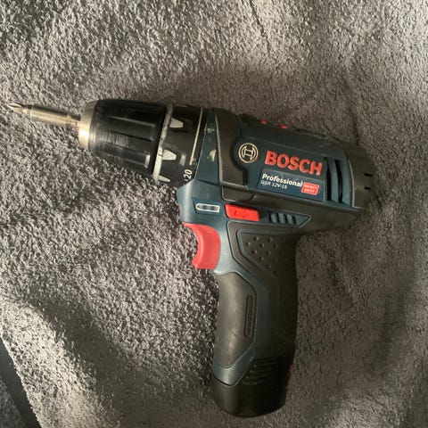 Bosch GSR 14,4 VE-2 akku boremaskine. Sættet omfatter boremaskine, flere 14,4 V batterier og oplader samlet i formstøbt plastkuffert. Velegnet til almindelige bore- og skrueopgaver i hjemmet og på værkstedet, hvor der ønskes en batteridrevet løsning med ekstra batterier til længere arbejdstid.