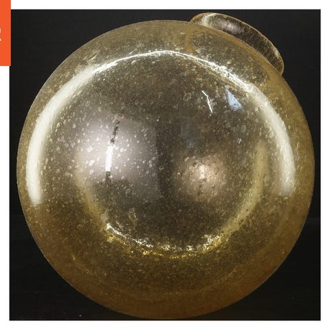 To runde glas kugler som kan stå på gulvet eller på bord/reol.