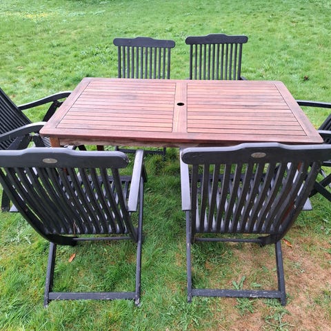 Havemøbelsæt meso 4 styk positionsstole med hynder, Teaktræ, stole marker på Hillerstorp Sweden bordet Øutdoors.