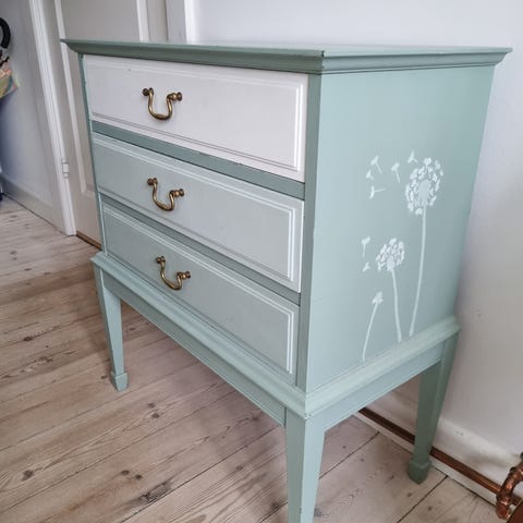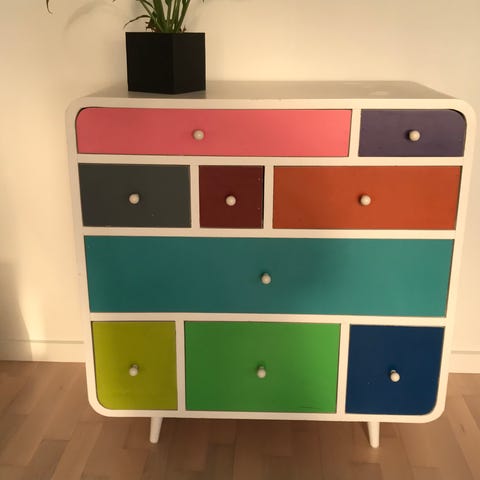 Kommode med skuffer rosa og hvid