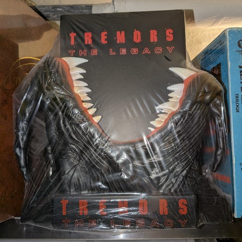 Tremors Quadrilogy dvd samleboks med fire film i Tremors-serien. Boksen indeholder de første fire film samlet på dvd. Diskenes og coverets tryk viser titler og information om de enkelte film i serien. Velegnet til afspilning på standard dvd-afspillere, der understøtter det angivne regionskodeformat på omslaget.