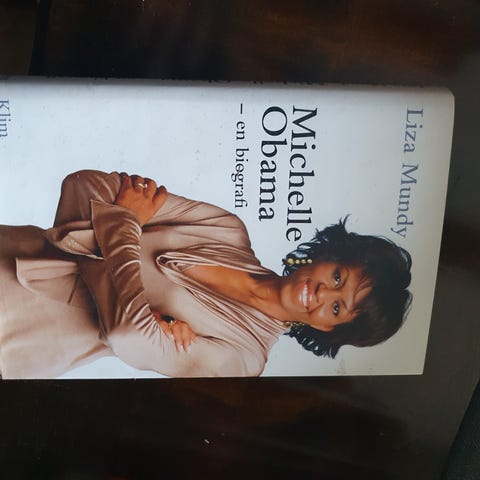 Michelle Obama, Liza Mundy, Indbundet bog om Michelle Obamas liv på 246 sider med 8 sider med billeder i farver. Udgivet af Gyldendal