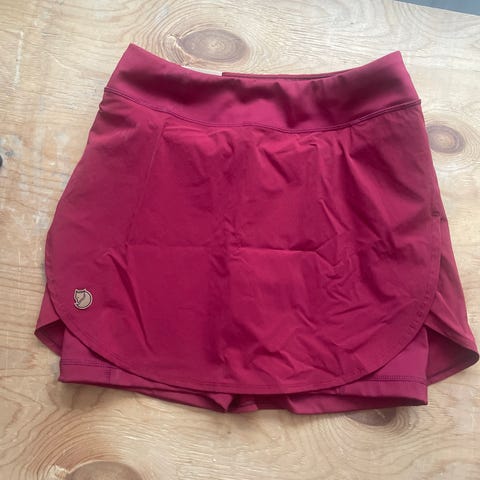 Fjällräven sommerkjole i str. XL til dame. Kjolen er beige og fremstillet i polyamid. Modellen har slå-om effekt med bindebånd i siden, kortærmer og krave. Materialet er let og glat. Diskret Fjällräven-logo er broderet på brystet. Velegnet som let sommerkjole eller hverdagskjole.