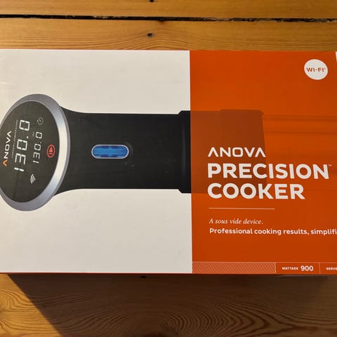 Sous vide stav i sort plast og rustfrit stål. Enheden nedsænkes i en gryde eller beholder med vand og cirkulerer samt opvarmer vandet til præcis temperatur til sous vide-tilberedning. Udstyret med strømledning og klemme til fastgørelse på kanten af gryden. Velegnet til tilberedning af kød, fisk, grøntsager og andre råvarer ved lav, kontrolleret temperatur.