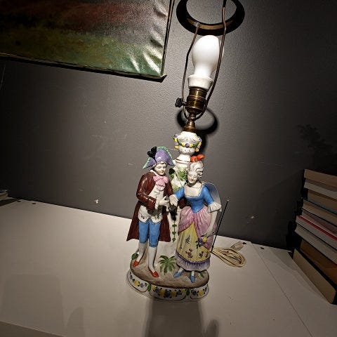 gammel rokoko lampe 100 kr.