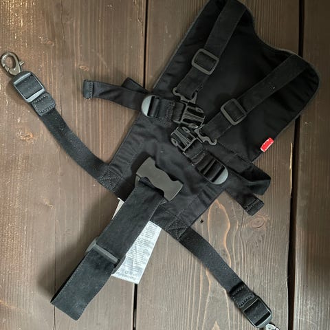 Odder sele til barnevogn eller klapvogn i sort. Selen har flere justerbare remme og spænder, så den kan tilpasses barnet og vognen. Den er beregnet til at holde barnet sikkert fastspændt under kørsel. Materialet er robust tekstil med kraftige stropper og plastspænder. Velegnet som ekstra eller reserveselesystem til Odder barnevogn eller klapvogn, hvor der er behov for en sele til fastspænding af barnet.