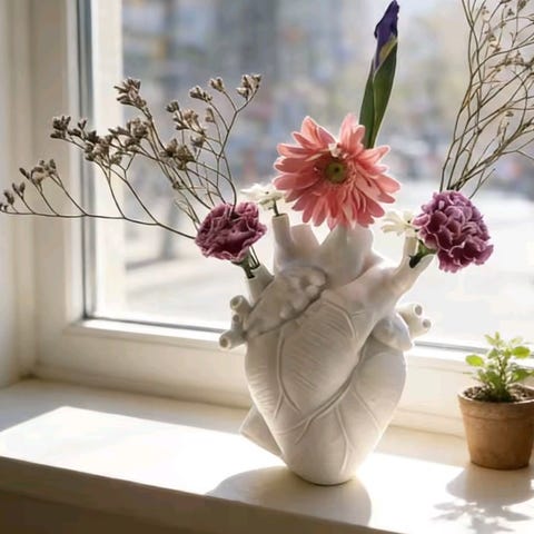 Stort anatomisk hjerte skulptur figur vase ca 15 x 14