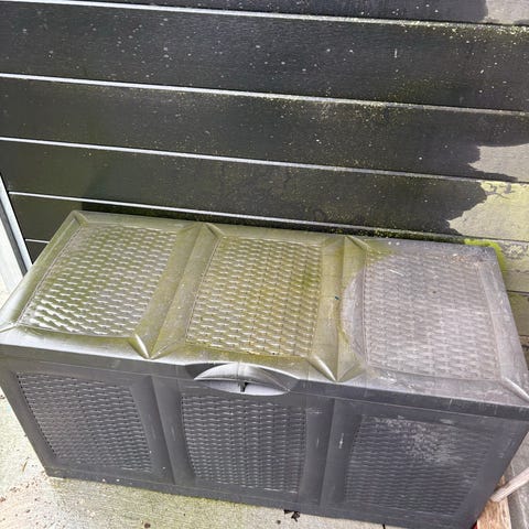 Hyndeboks i gråt plastflet. Boksen har låg, håndtag i siderne og hjul, så den er nem at flytte. Indvendigt egnet til opbevaring af hynder, tæpper eller andet udstyr til udendørs brug. Velegnet til terrasse, altan eller have, hvor der er behov for tør og samlet opbevaring.