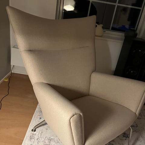 Sælger en enkelt af mine udgåede Jennylund lænestole med 2 x Bemz betræk + en lille rund pude med matchende betræk.