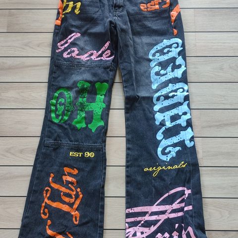 Sælger 5 par jeans, 3 af dem med læder look og de 2 andre cowboybukser. Str xs. Alle 5 par sælges til 200 kr.