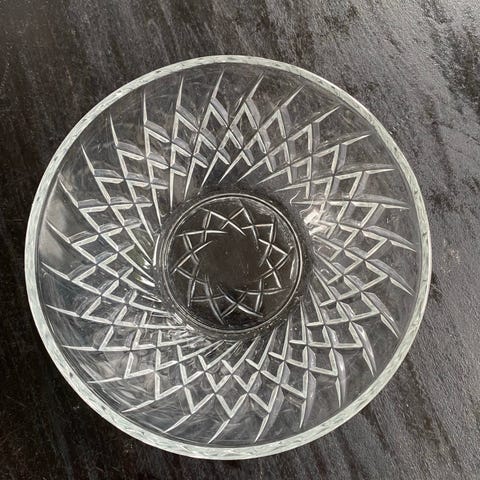 Glas skål og sæt med flødekande og sukkerskål i klar glas