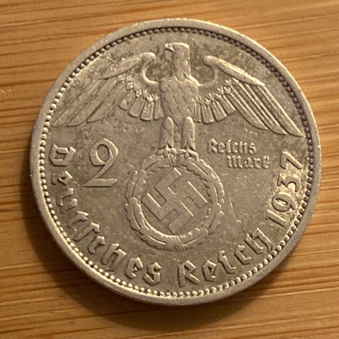 Tysk. 1 mark 1927 J. Sølvmønt svært årstal og bogstav.
