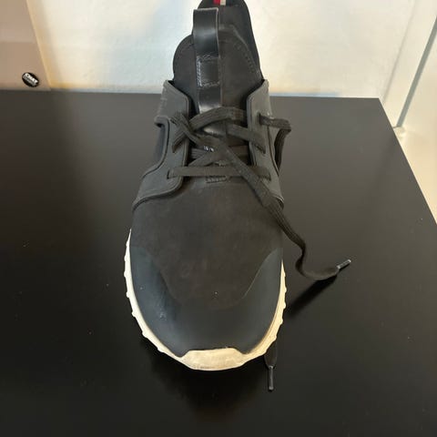 Moncler sneakers i størrelse 44. Modellen er i sort farve med høj skaftkant i strik og kraftig, mønstret gummisål. Overdelen fremstår i glat materiale med snørelukning foran og diskrete Moncler-detaljer. Velegnet som hverdagssko eller til fritidsbrug i bymiljø.