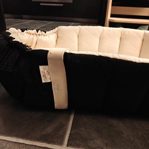 Copenhagen Colors babylift i sort og hvid. Babyliften har bløde, polstrede sider og bærehanke, så den kan flyttes efter behov. Indersiden er lys for bedre overblik over barnet, og formen passer til brug i fx barnevogn, seng eller på sofa. Velegnet til spædbørn i den første periode, hvor der er behov for et afgrænset og trygt sovested.
