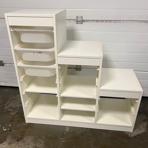 IKEA børnemøbel opbevaringsreol med plastkasser hvid