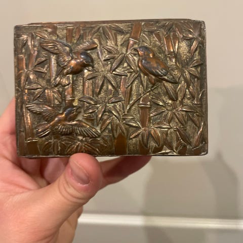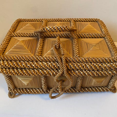 Sødeste vintage skab i flet. Måske til nøgler eller smykker.