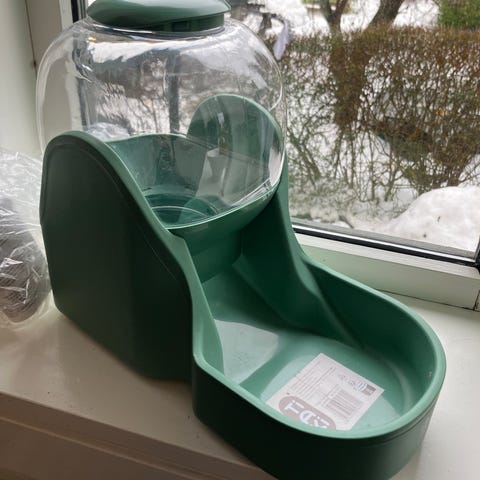 Sælges pga min kat er afgået ved døden, min kat har været meget glad for denne Foderautomat, specielt det at jeg kan give ham mad via min mobil, hvis jeg ikke lige når hjem til aftensmaden.