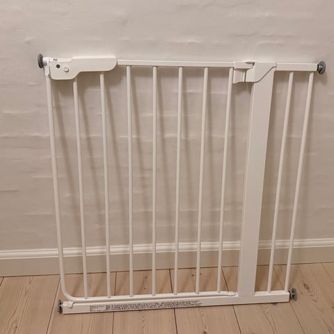 BabyDan sikkerhedsgitter i hvid metal. Gitteret monteres i døråbning eller mellem to vægge ved hjælp af justerbare beslag i siderne. Velegnet til at afskærme områder i hjemmet for små børn, f.eks. ved trapper eller i døråbninger. Designet med lodrette tremmer og en ramme, der giver en stabil barriere. Egnet til indendørs brug i børnefamilier, hvor der er behov for ekstra sikkerhed omkring bestemte rum eller områder.