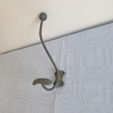 Her sælges en sort knagerække med “pocket” hylde ovenover.
