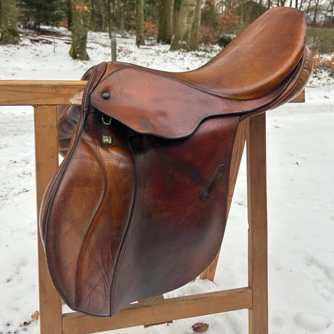 Passier & Sohn, young winner. 16 tommer. Ligger godt og giver både god støtte og frihed for rytteren. Brugt til 1’er pony på 148 cm (DSP/new forest).