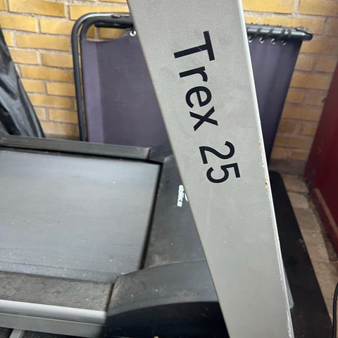 Reebok løbebånd. Løbebåndet er sammenklappeligt og kan stilles oprejst for pladsbesparelse, som det ses på billederne. Har ikke incline.