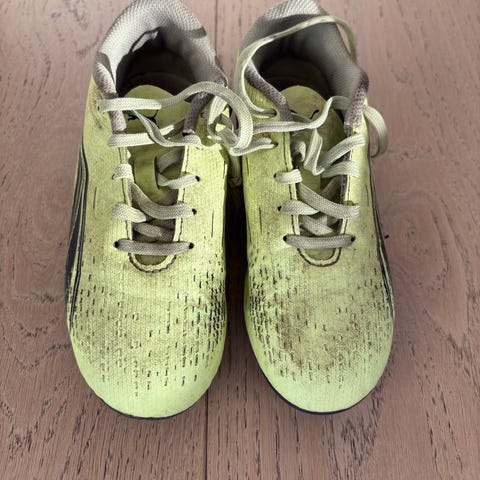 Puma fodboldstøvler i sort med røde Puma-logoer og knopper. Modellen har snørelukning og overdel i syntetisk materiale. Ydersålen er udstyret med faste knopper, som er velegnede til spil på græsbaner. Velegnet som fodboldsko til børn.