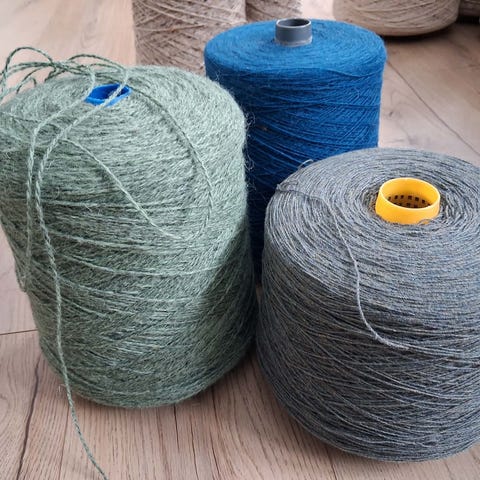 Sælger en masser af forskellige cones(: garnet har forskellige tykkelser fra cones til cones(: så man kan sagtens fx strikkes af det:D fik at vide det var uld men vil intet love da jeg ikke er sikker, så derfor sælges det billigt(: pris pr kg er ca 125 kr(: