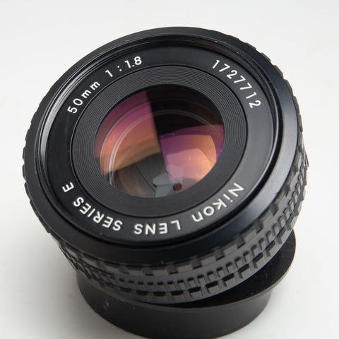 3 Nikon E objektiver: 50mm 1:1.8, 100 mm 1:2.8, 75-150mm 1:3.5