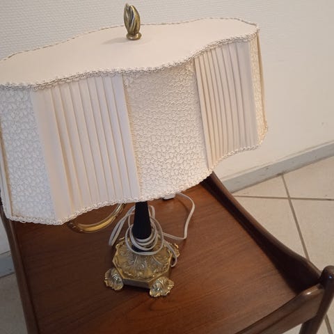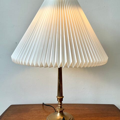 Enkel retrolampe i messing/ træ m Le Klint skærm