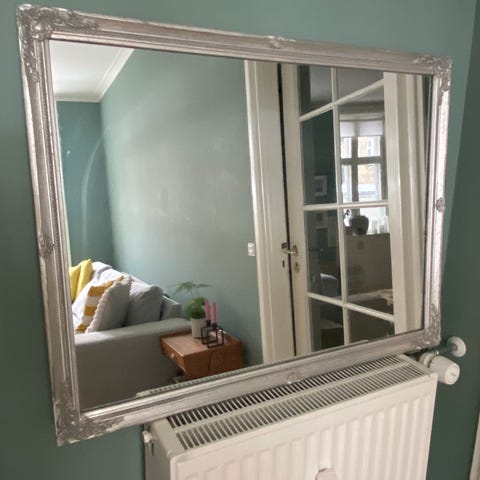 Et flot vægspejl med Sølv/sort-ramme