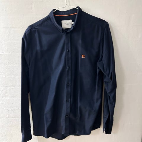 Les Deux herreskjorte i blå stribet, bomuld i størrelse M. Skjorten har lange ærmer og gennemgående knaplukning foran. Materialet er bomuld, hvilket giver en blød og behagelig kvalitet egnet til hverdagsbrug. Designet er klassisk og kan bruges alene eller over en T-shirt som et ekstra lag tøj.