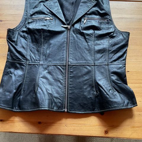 Smuk boho vest. Den kan vendes hvis man ønsker dette så får du en flaskegrøn pels vest med cognac brun læder hist og pist. Eller brug den som jeg med udvendig spænde og det brune med den flaskegrønne krave. Sælger kun da jeg er ved at rydde op. Den har ligget i mit walk in closet i 8 år. Minus røg minus lugt. Minus brugt ret meget. Super flot til det rigtige outfit