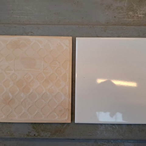 Har 2 pakker a 1 kvm rød blank flise