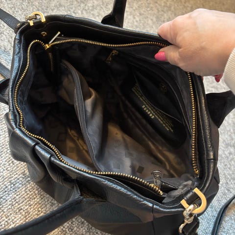 1 stk. brugt dametaske Adax kalveskind i rigtig pæn stand 38 x 30 cm. Sælges for 450 kr.