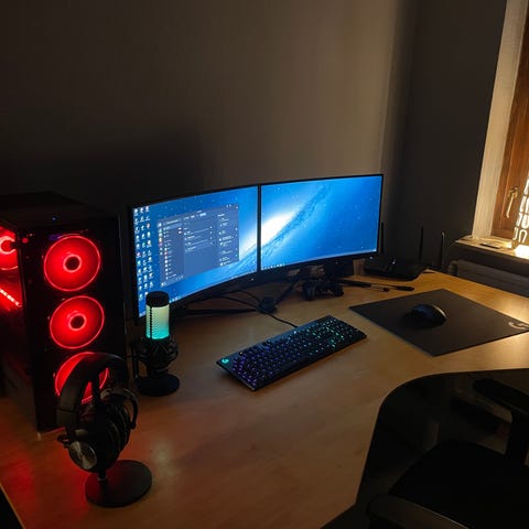 Godt og brugbart skrivebord med med indstillinger. Hæve/sænke plade til skærm, mulighed fór skråtstillet bordplade og alm hæve/sænke bordplade. Bordpladen har nogle mærker men ellers et rigtig godt bord. Måler: 230x95/110 cm.