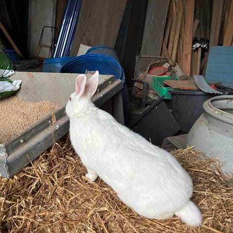 Vi sætter kaninerne ud her sidst i april så har vi nye til slagt om ca. 5 mdr.