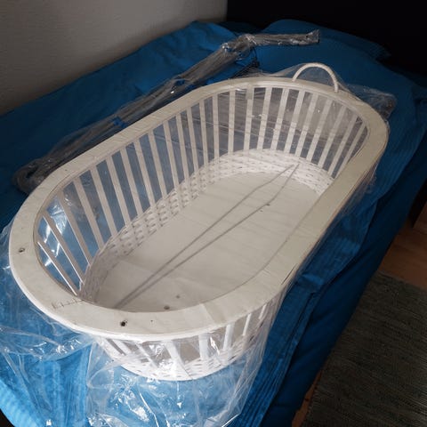 Vugge i hvid. Måler 90 lang / 50 cm bred / 75 cm høj ( udv. mål )