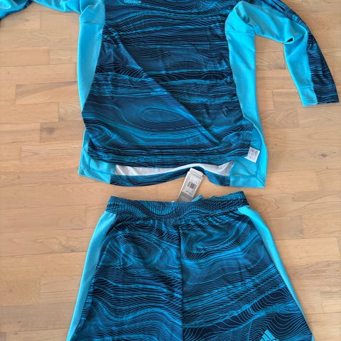 Alt er med, trøje, shorts og sokker.