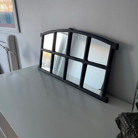 Smukt og rustikt staldvindue i sort med spejl. Kan bruges som dekoration til fx bordplan til bryllup, fødselsdag, konfirmation og barnedåb.