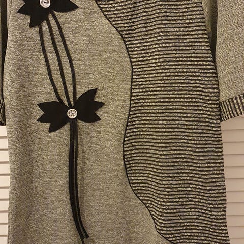 Langærmet bluse i sort med Faith, Hope og Love tekst i multifarvet. Str XXL.
