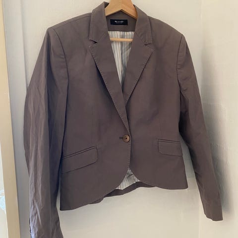 Blazer med fine detaljer og to lommer. Jeg tror stoffet er blandingstekstil af bomuld og polyester. Passer S/M. Fejler intet