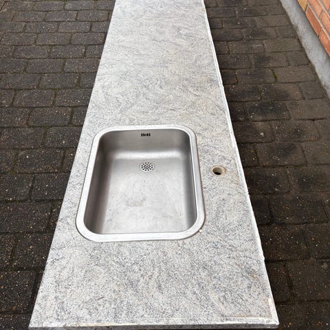 Køkkenbordplade med vask og armatur