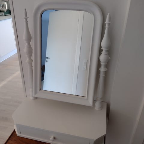 Vippespejl med skuffe i mørkt træ