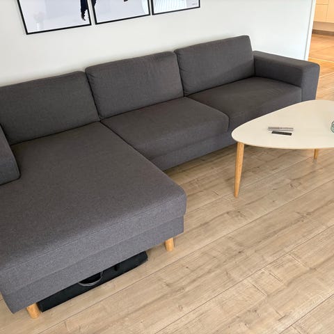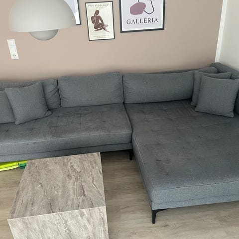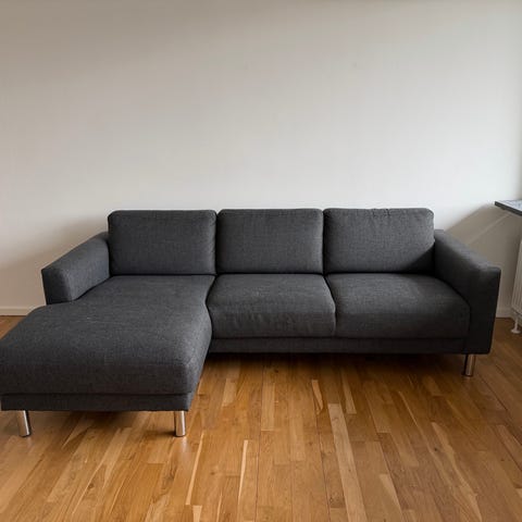 Pæn og velholdt grå sofa med flytbar chaiselong. Sofaen er ca. 1 år gammel og fremstår flot visuelt.