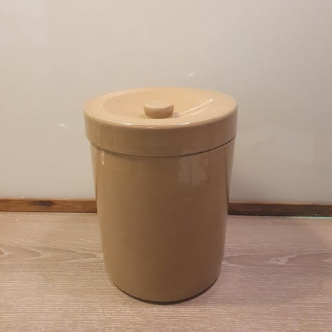 Stor lågskål i keramik med låg.H 20 cm, Dia 13 cm.Flot og velholdt, uden skår eller revner. Gå til varen, for flere billeder.(A4).